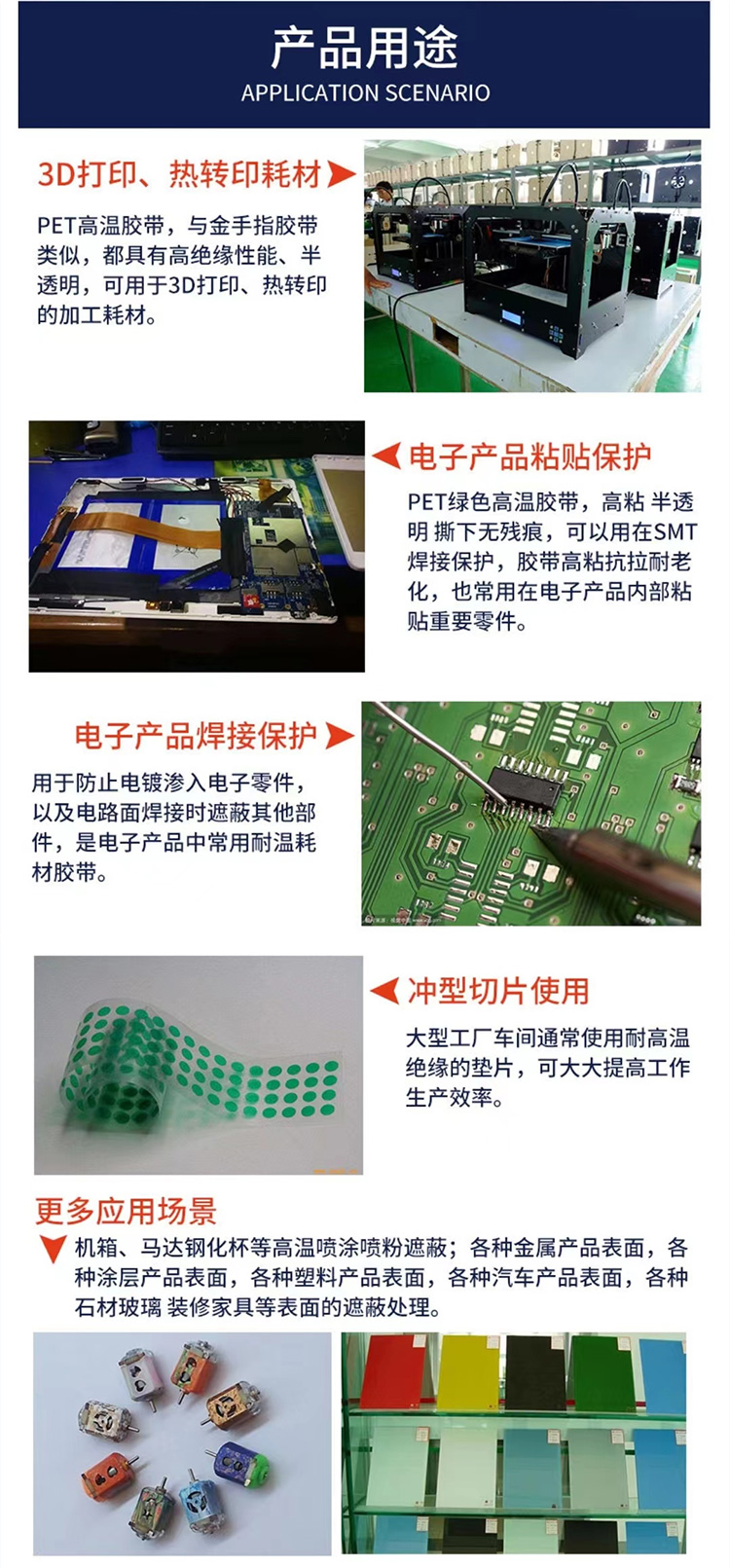 - PET綠色高溫膠帶是以聚酯薄膜為基材,涂敷耐高溫壓敏膠而成。是目前全球公認的一種最為優(yōu)秀的熱塑性通用塑料之一。具有優(yōu)良的耐化學(xué)耐熱性和耐寒性,能自阻燃和抗熔融金屬滲透;同時具有良好的電氣絕緣性能,介電常數(shù)小(2.2-2.8),擊穿電壓高(20-50kV/mm);并具有優(yōu)異的粘接強度和高彈性。